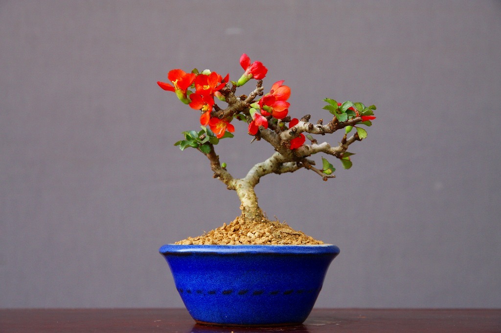 この木は葉性の良い1号性の中でも、花付きが良く、季節を問わずたくさんの花が何度も咲きます。盆栽としての模様付け、枝を仕立てており、手軽に飾って楽しめる一樹です。長寿梅という名前から敬老の日、母の日、父の日、誕生日等様々な記念日に喜ばれます。他にも白花長寿梅もあります。画像は見本であり、同等品になります。【 約 樹高 9cm 鉢横幅 9cm 幹直径 1cm 】
