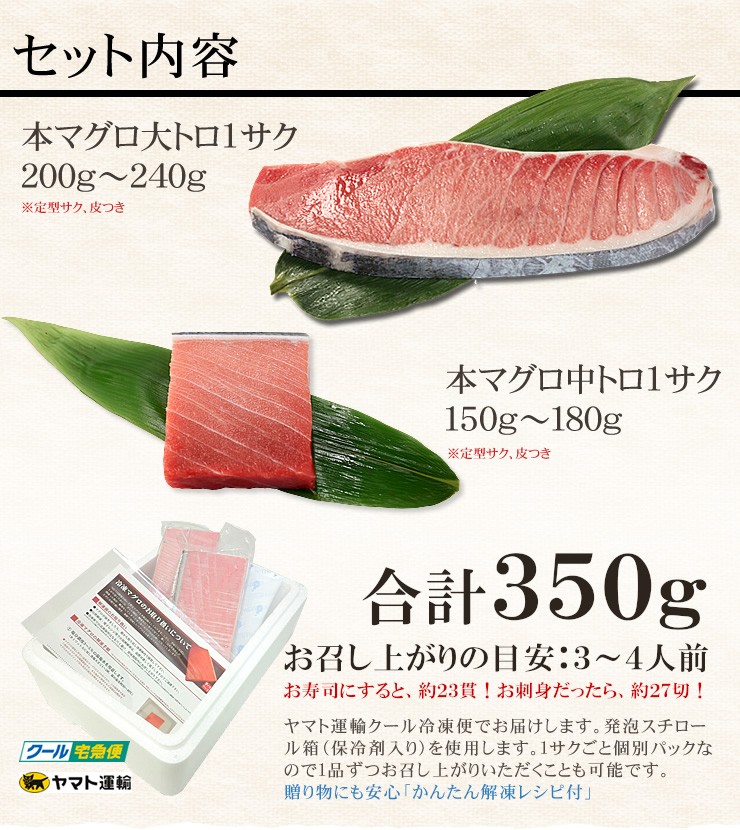 ■内容量:大トロ200g、中トロ150g