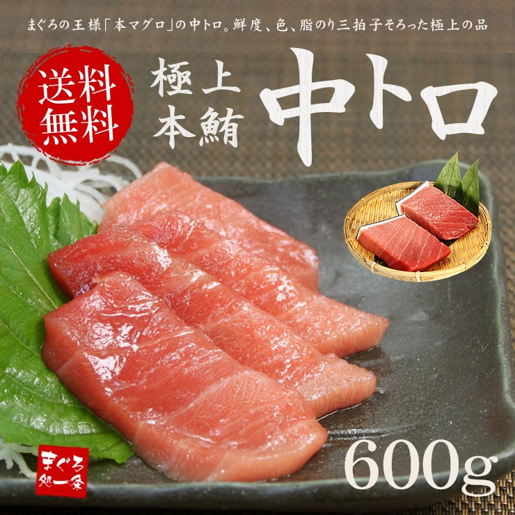 本マグロ中トロ 600g 送料無料 解凍レシピ付 刺身 海鮮 食べ物 爆買〈bf1〉《pbt-bf2》[[中トロ300-2p]
