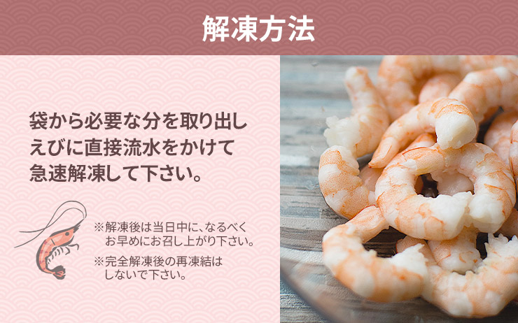 ■解凍方法:えびに直接流水をかけ急速解凍して下さい