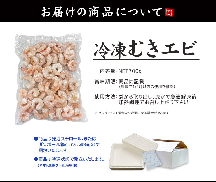 むきえび 700g(NET) 大きめ 50尾前後 背ワタなし 加熱用 剥きエビ ムキエビ [[むきえび700g]