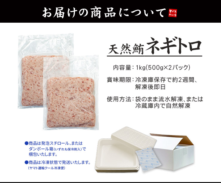 天然マグロのネギトロ 1kg(500g×2パック) 送料無料 ふんわり 流水解凍で簡単 解凍 〈ng500〉[[ねぎとろ500g-2p]