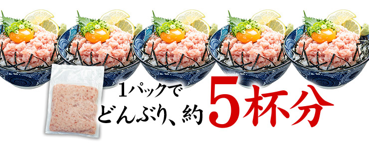 鮮度のよい天然のマグロを厳選して使用しています。2種類のマグロをバランスよく配合して、臭みの無いあっさりとした味わい、それでいて舌の上でとろっとなめらかな食感に仕上げました。流水解凍が可能で最短5分で召し上がれます。