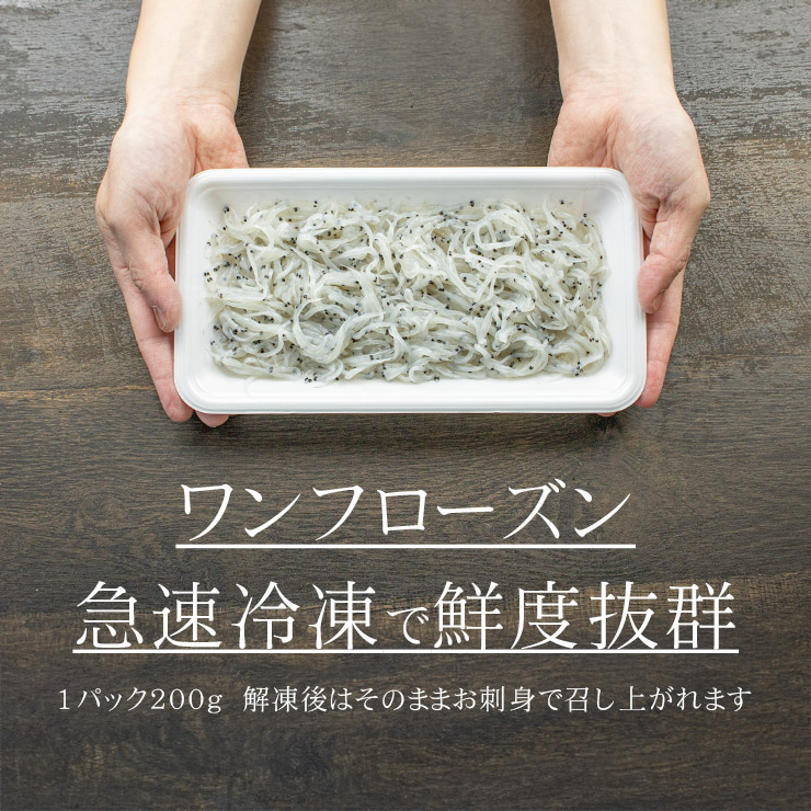 国産の白魚を、水揚げ後すぐ氷水で活〆し、鮮度抜群のまま急速冷凍し美味しさを閉じ込めました。そのままお刺身で召し上がれます。
