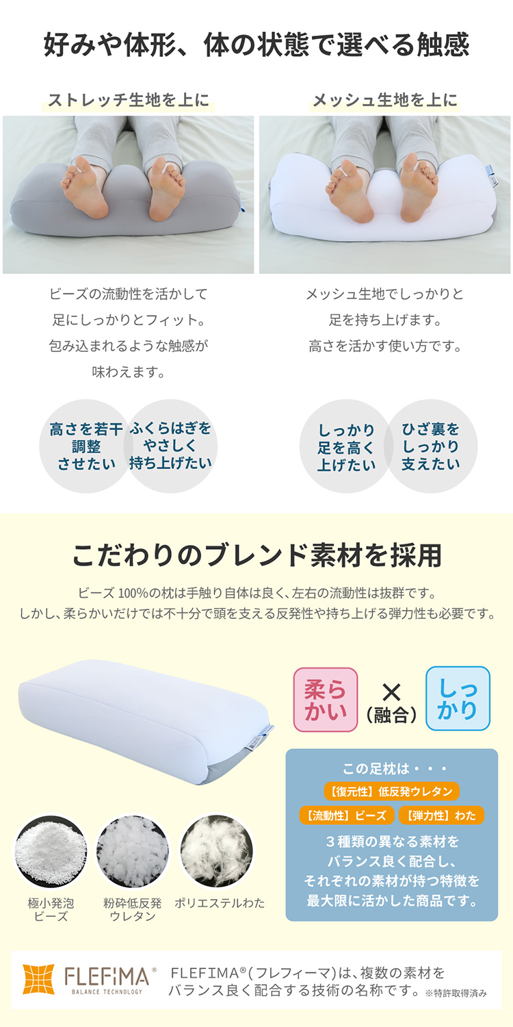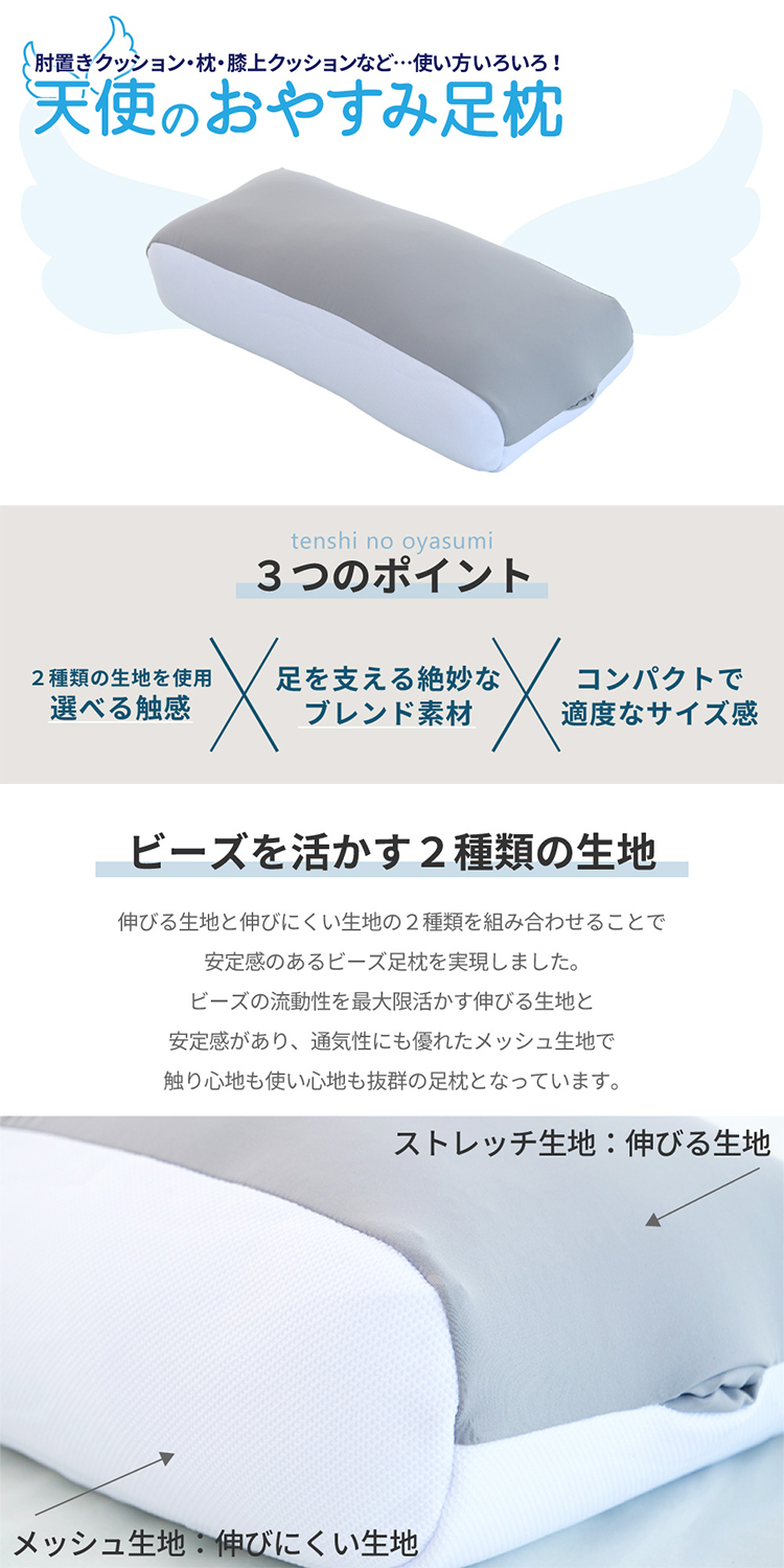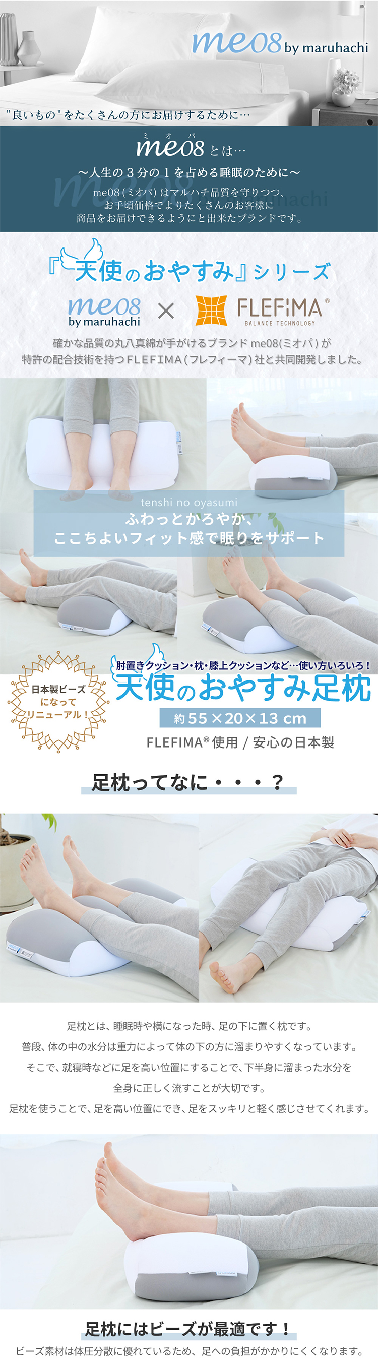 天使のおやすみ足枕 me08 FLEFIMA コラボ 支える フィット リラックス もちもち ビーズ ウレタン 洗える 安眠 日本製