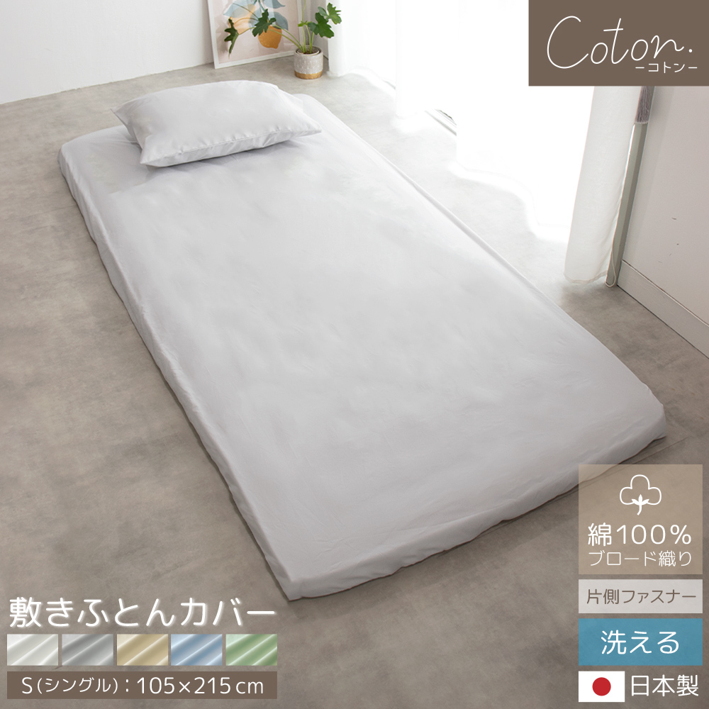 綿100% カバーシリーズ coton. 敷きふとんカバー 日本製 ブロード織 サイドファスナー 布団 シングル ロング シンプル ナチュラル BOMA 丸八真綿 家庭洗濯可能