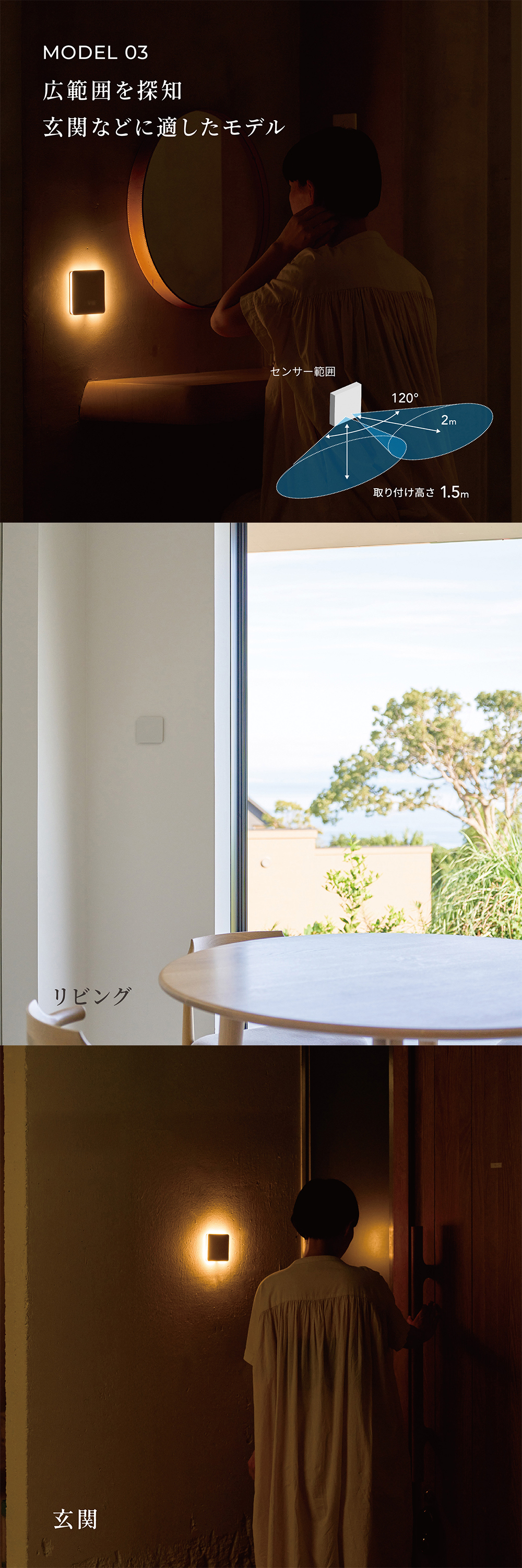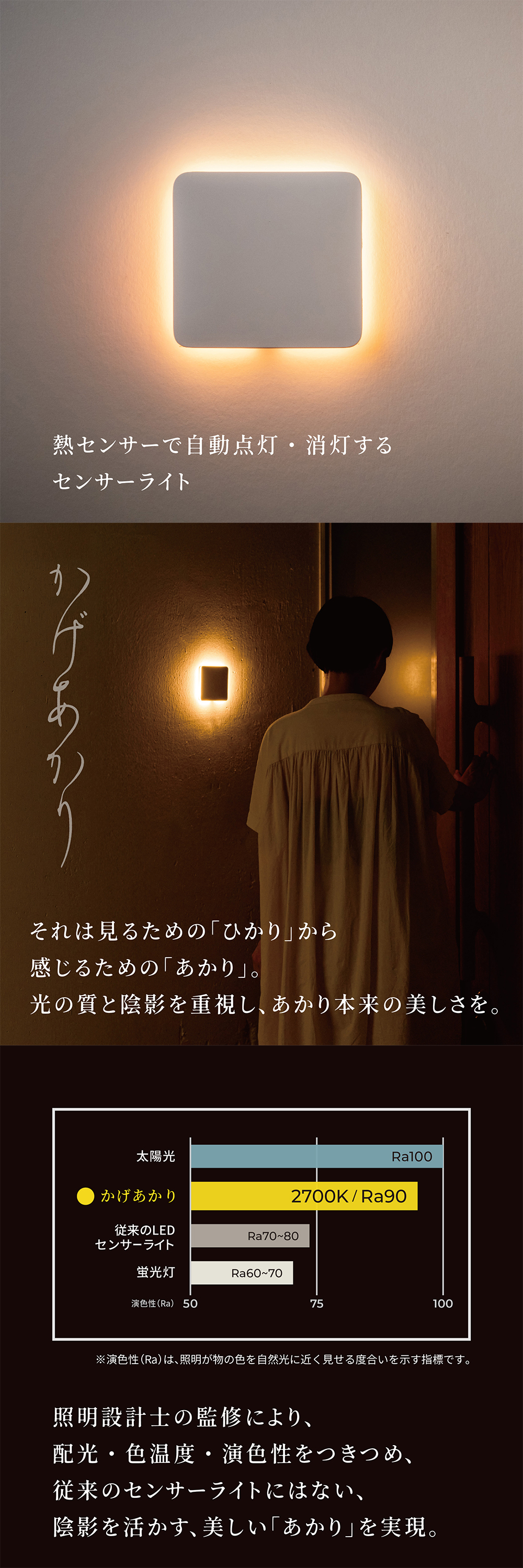 従来のセンサーライトにはない、陰影を活かす、美しい「あかり」を実現