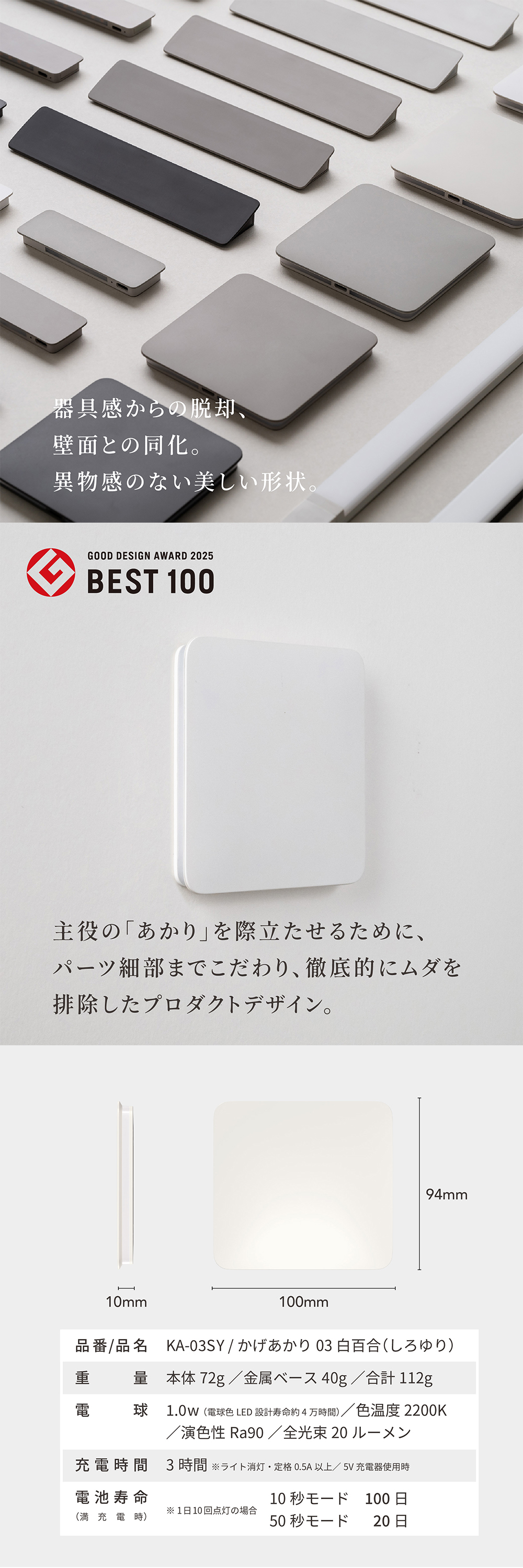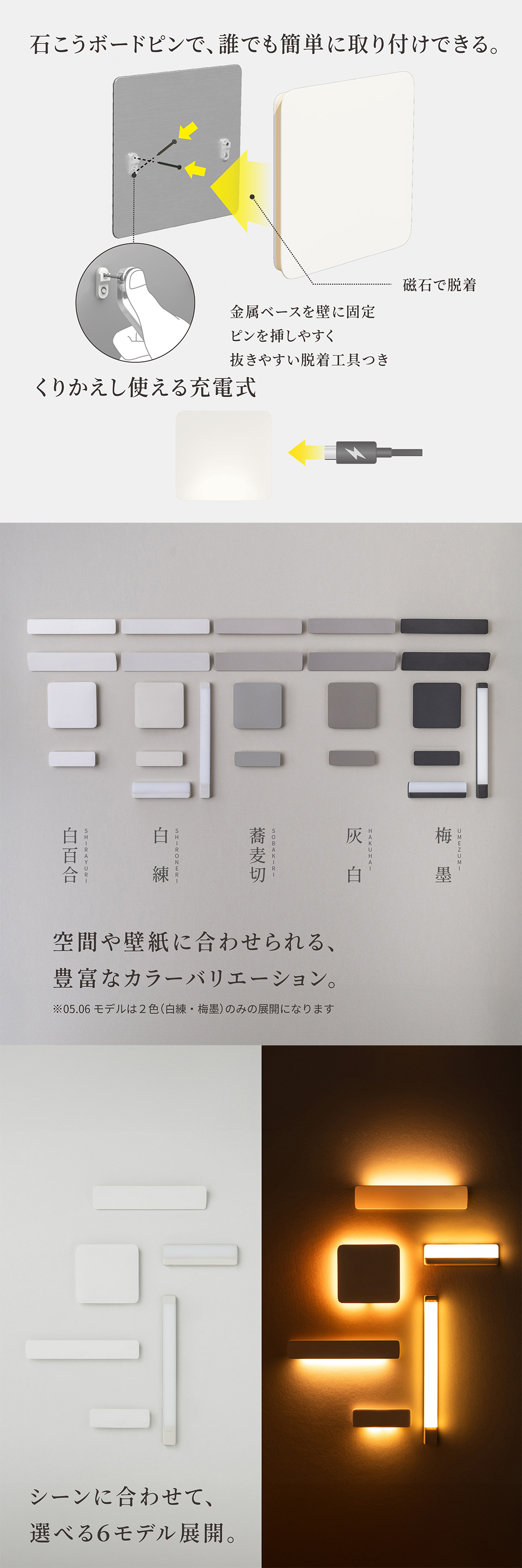 壁面と同化する、美しいフラット形状・主役の「あかり」を際立たせるために、