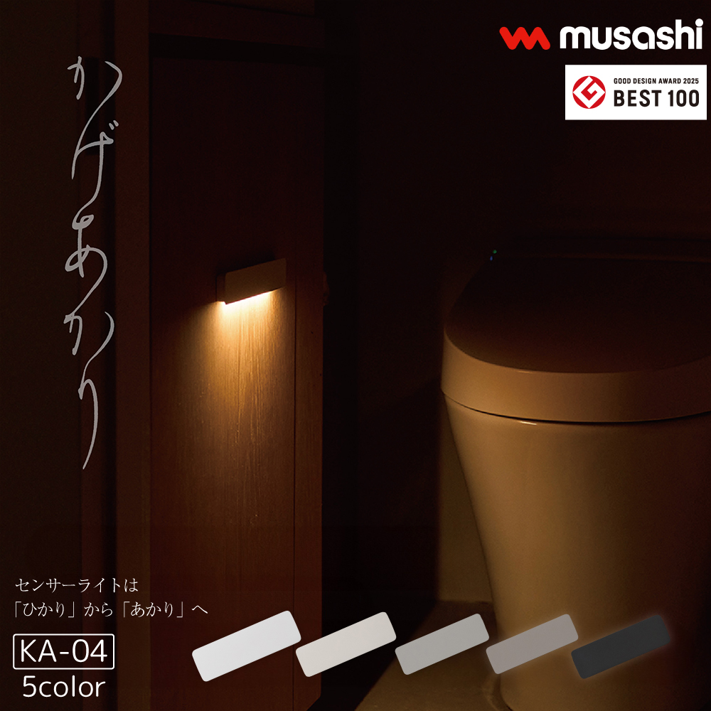 ≪メール便≫ かげあかり センサーライト KA-03 充電式 USB typeC 照明 壁面 間接照明 自動点灯 熱センサー 電池不要 おしゃれ ムサシ コンパクト 屋内 防犯