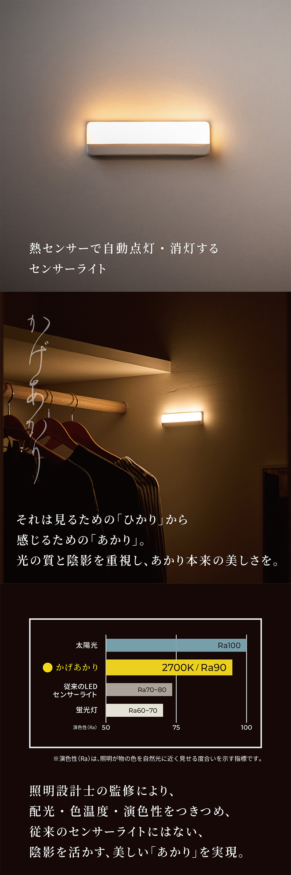 従来のセンサーライトにはない、陰影を活かす、美しい「あかり」を実現