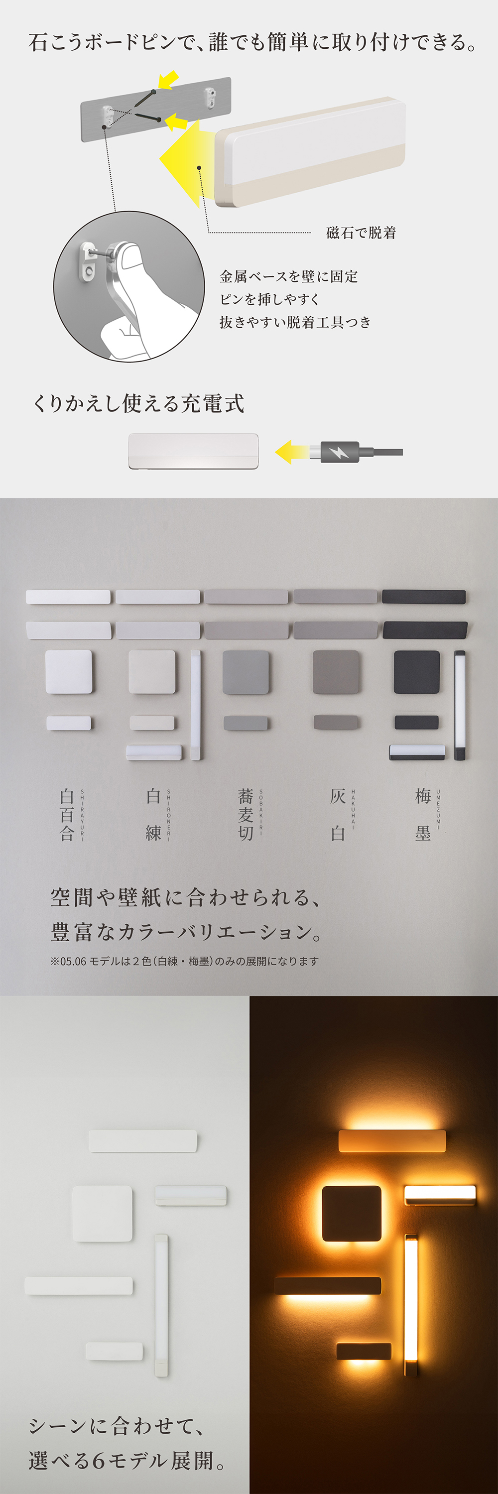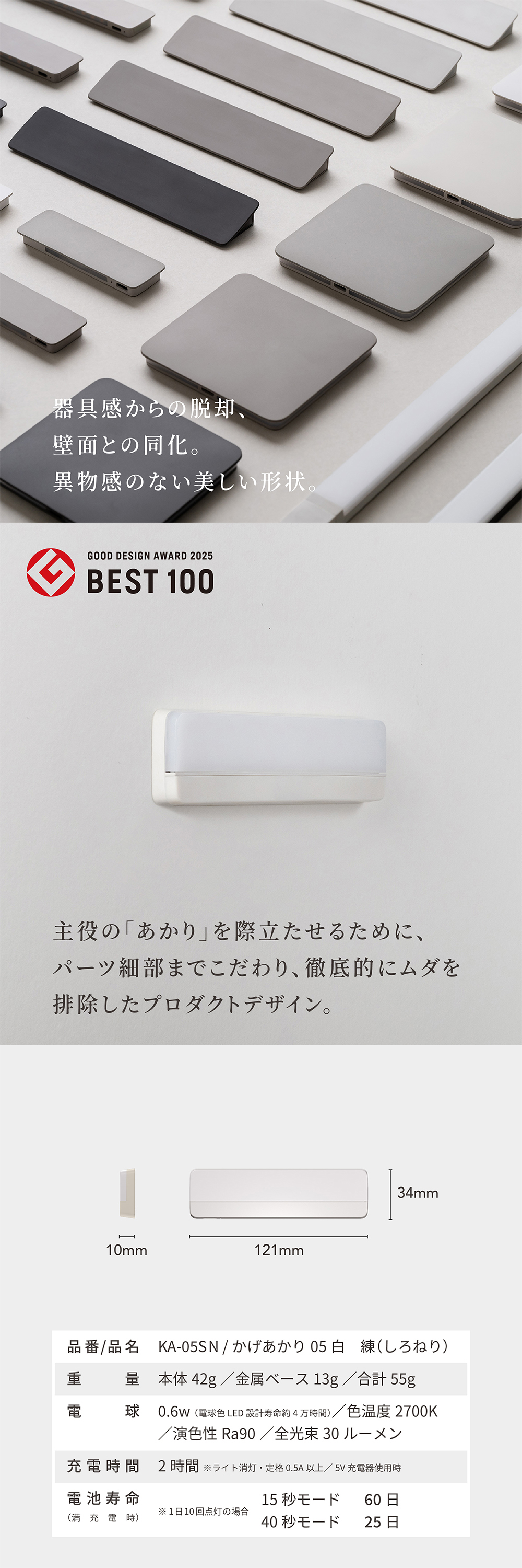 壁面と同化する、美しいフラット形状・主役の「あかり」を際立たせるために、