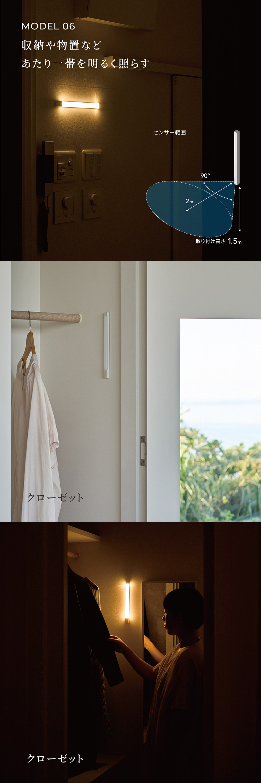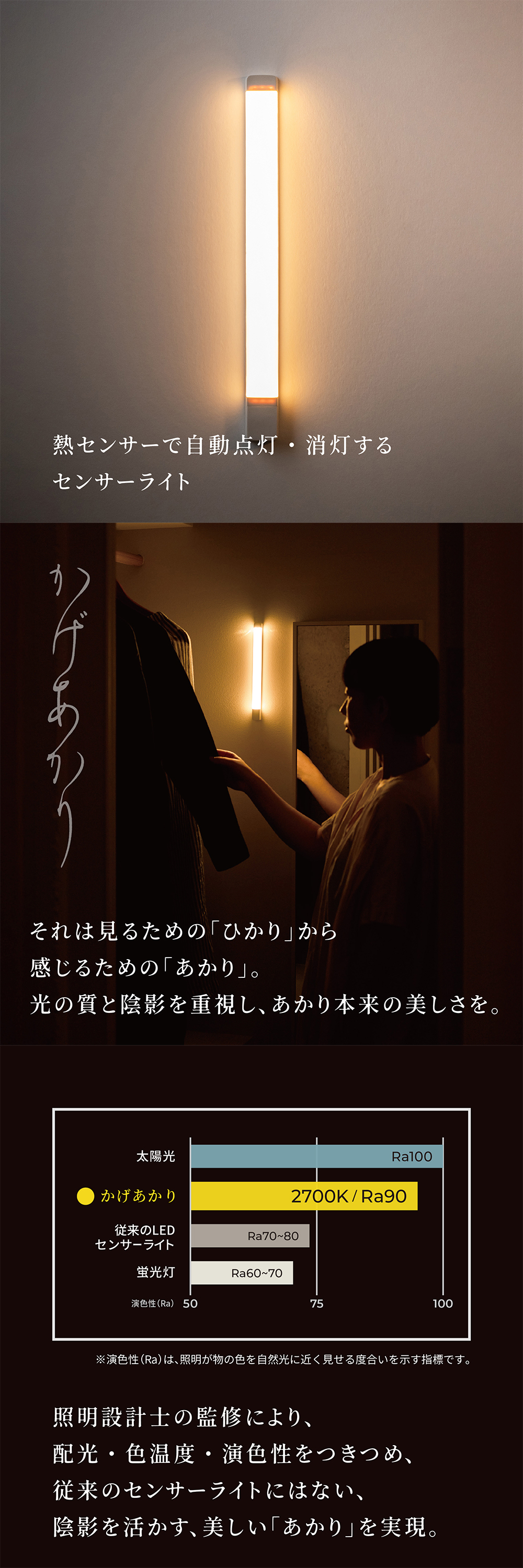 従来のセンサーライトにはない、陰影を活かす、美しい「あかり」を実現