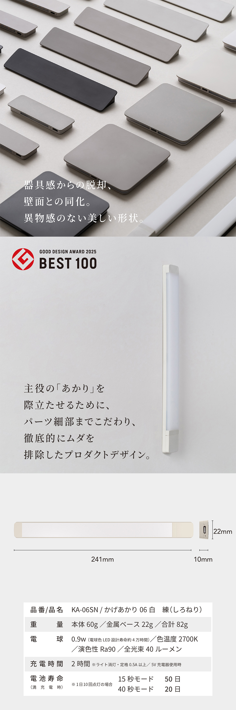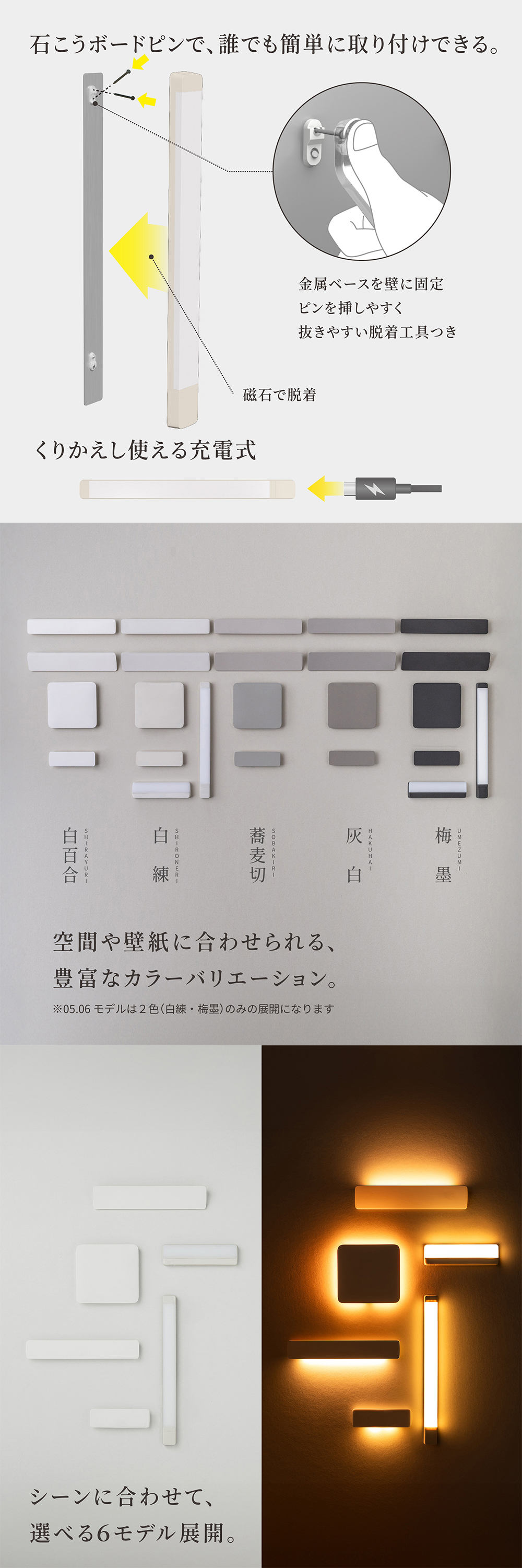 壁面と同化する、美しいフラット形状・主役の「あかり」を際立たせるために、