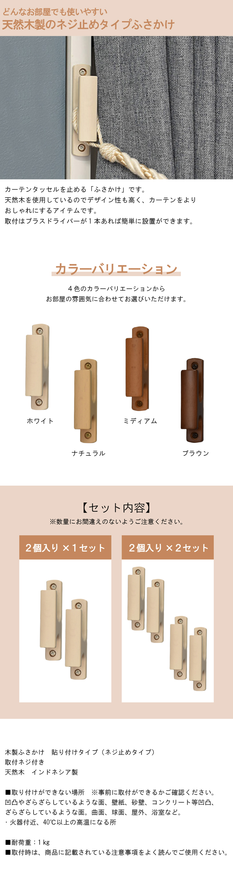 ネジ止めタイプ ふさかけ オウルB 房掛け 2個入り ネジ止め トーソー TOSO カーテン留め 木目 天然 韓国 インテリア 北欧 カーテン フック 雑貨