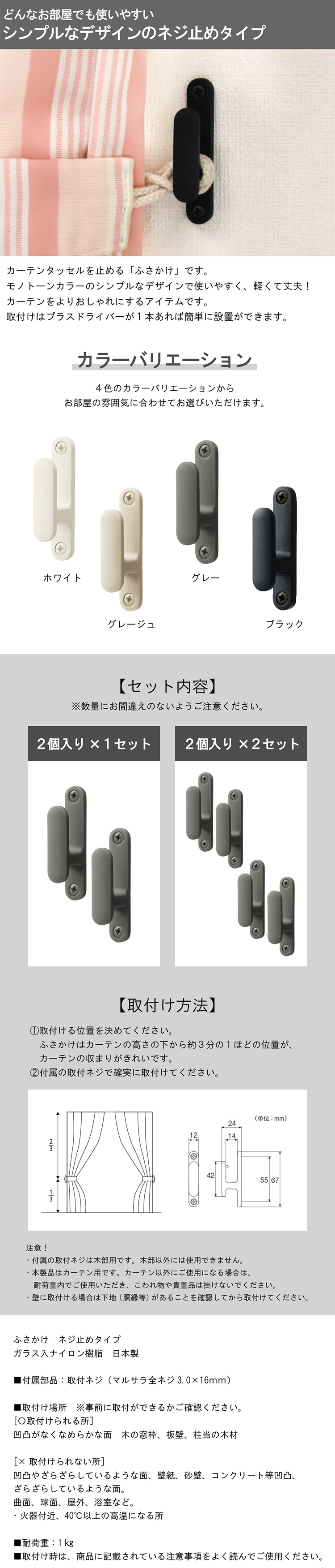 ネジ止めタイプ ふさかけ シプレ 房掛け 2個入り ネジ止め トーソー TOSO カーテン留め シンプル ナチュラル モノトーン グレージュ 送料無料