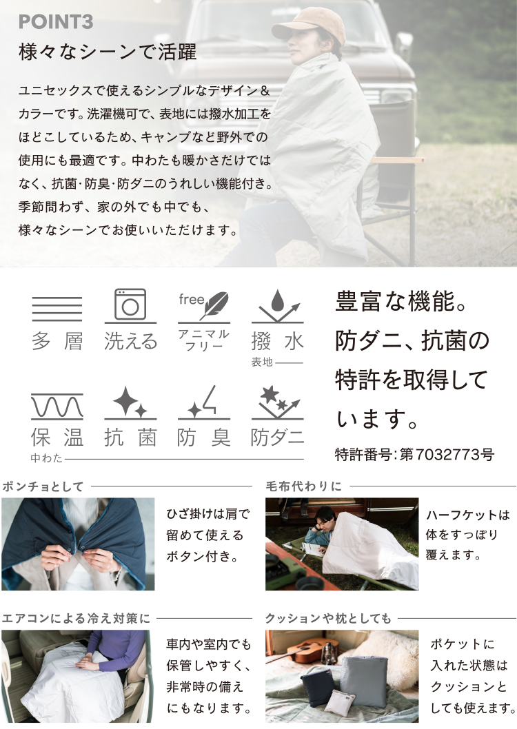 超軽量! ハーフケット コンパクト収納 アウトドア カポック綿 暖か ブランケット おしゃれ 天然素材 軽い 冷え対策 防ダニ 抗菌 洗える 撥水 保温 防臭