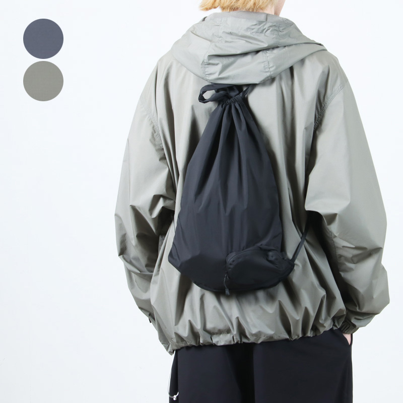 軽量ながらも強靭さも兼ね備え、トラベルシーンのアレンジを可能とした超軽量素材 PERTEX を使用したナップザック。