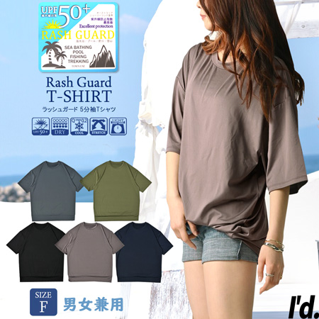紫外線防止指数最高値 UPF50+ ラフラッシュガード 日焼け防止 紫外線 UVカット 半袖Tシャツ 五分袖 接触冷感 海水浴 夏 オーバーサイズ 男女兼用 5721