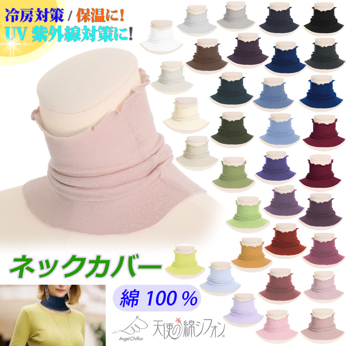 NEW 全34色 綿100% ネックカバー 裾広がりタイプ 天使の綿シフォン 薄手 ダブルガーゼ 保温 レディース UV 春 夏 秋 冬 ネックウォーマー 新色 レディース 9988