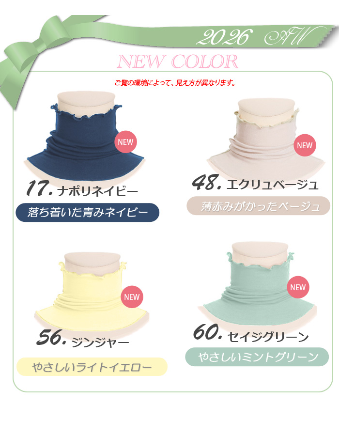 NEW 全36色 綿100% ネックカバー 裾広がりタイプ 天使の綿シフォン 薄手 ダブルガーゼ 保温 レディース UV 春 夏 秋 冬 ネックウォーマー 新色 レディース 9988