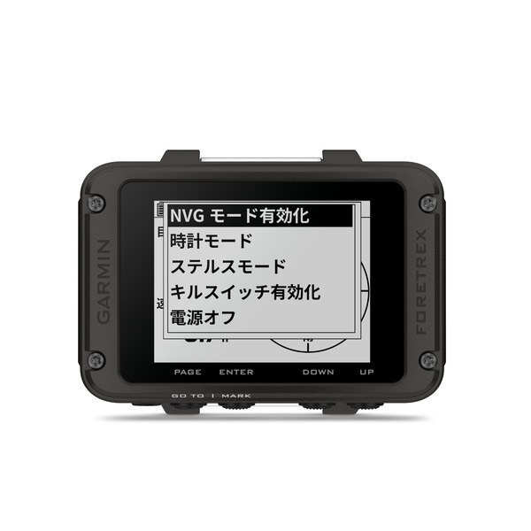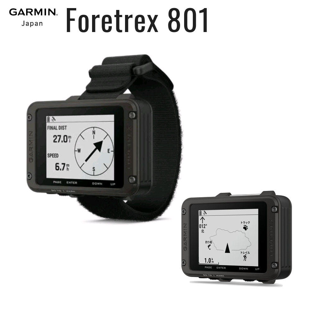 「Foretrex」シリーズは、GPS、GLONASS、Galileo、みちびき(補完信号)、BeiDou衛星システムを利用して、屋外であれば世界中ほぼすべてのエリアで現在地を把握できるハンズフリー GPSナビゲーターです。 米国規定(MIL-STD-801)の耐熱性、耐衝撃性、耐水性と高い耐久性と、視認性の高いディスプレイを搭載。砂塵や振動にも強く、手首に巻けるリストバンド型なので、両手をふさぎたくないミリタリー関係者やスカイダイビングを楽しむ方から高い信頼を得ています。 ナビゲーション機能は、Garminが誇るGPSとABCセンサー機能で包括的に提供。コンパスが常に行先の方向を調整するだけでなく、内蔵高度計が上昇・下降を正確に監視して高度データを提供。また、気圧計が大気の気圧中の短期的な傾向を表示するので、気象変化の予測にも活用可能。電子3軸コンパスは、静止時はもちろん、移動時でも正確な方位情報を表示します。 また、互換性のあるスマートフォンとペアリングすることで、デバイスでメールやテキスト、アラートが受信できるスマート通知機能も搭載。スマートフォンを取り出さずに、常に手元で確認できます。 ミッションを可能に、リストバンド型GPSナビゲーター Foretrex 801はミッションをサポートするリストバンド型GPSナビゲーター。見やすいモノクロディスプレイ、アップグレードされたGNSSマルチバンド、高度なナビゲーションセンサーを搭載し、自信を持って探索いただけるようサポートします。 |  見やすい モノクロ画面 |  GNSS マルチバンド |  暗視ゴーグル に対応 |  ステルスモード に対応 |  Exploreアプリ に対応 |  キルスイッチ | 長時間のバッテリー寿命 GPSモードで最大100時間、エクスペディションモードで最大1000時間のロングバッテリー。現場でも簡単に交換できる単4形電池2本を使用(別売)。  耐久性に優れたデザイン アメリカ国防総省が定めるMIL規格「MIL-STD-810」に準拠。IPX7の防水性能を備えたタフなデザイン。  タクティカル機能 GPS位置の保存と共有が停止し、ワイヤレス接続通信が無効になるステルスモードを搭載。またセキュリティ上の問題が発生した場合は、キルスイッチをオンにして、すべてのメモリの消去とオールリセットをすることで、位置情報などの漏洩を守ります。  視認性の高いディスプレイ 暗視ゴーグルを装着していても、どんな条件下でも視認性の良いモノクロディスプレイ。  ナビゲーションセンサー 3軸加速度センサー、3軸コンパス、気圧高度計を含む先進のセンサーで目的地へナビゲート。マルチバンドGNSSで複雑な地形環境下でも精度の高い測位を実現。  スマートフォンとペアリング 互換性のあるスマートフォンとリンクすると、デバイスで通知を受け取ることができます。互換性のあるinReach衛星通信機とペアリングし、メッセージを直接画面で確認できます。 主な特徴 ★は新機能、アップデート ■ミリタリー準拠の耐久性を誇るリストバンド型GPSナビゲーター 米国規定(MIL-STD-801)の耐熱性、耐衝撃性、耐水性と想像を超える耐久性を実現。砂塵や振動にも強く、リストバンド型なのでハンズフリー。両手をふさぎたくない方におすすめのGPSナビゲーター。ベルトを外すこともでき、超小型ハンディGPSとしても活用いただけます。  ★GNSSマルチバンド対応に進化したGPSでより高精密な位置情報を提供 位置情報は、GPS、GLONASS、Galileo、みちびき(補完信号)、BeiDouの衛星ナビゲーション受信ネットワークと連動することで、過酷な環境でも現在地を補足。最新のGNSSマルチバンドを搭載し、山の谷間や岩など遮蔽物が多い場所でも高精密でスピーディーな位置情報を提供します。 ★バッテリー性能がさらに強化。GPSモードで100時間のロングバッテリーに 電源は単4形電池2本を使用。バッテリー性能がさらに強化され、デフォルトのGPSモードで約100時間、エクスペディションモードでは約1,000時間の寿命を実現しました。 小型電池を使用するのでかさばらず、電源がない場所でも簡単に交換可能です。 ★小さくても見やすいディスプレイもさらに改良 見やすさと操作性を両立させた2.2インチモノクロディスプレイも改良され、あらゆる照明条件下でも視認性が向上。通常の視認だけでなく、暗視ゴーグル装着時でも見やすいナイトビジョンモード搭載。 ■Garminが誇るGPS解析とABCセンサーで包括的に位置情報を提供しナビゲート ナビゲーション機能は、Garminが誇るGPSとABC(高度計、気圧計、3軸電子コンパス)センサー機能、および3軸加速度計を内蔵し、包括的に提供。コンパスが常に行先の方向を調整するだけでなく、内蔵高度計が上昇・下降を正確に監視して高度データを提供。また、気圧計が大気の気圧中の短期的な傾向を表示するので、気象変化の予測にも役立ちます。3軸コンパスは、静止時だけでなく、移動時でも正確な方位情報を表示。 ■スマート通知機能搭載 互換性のあるスマートフォンとペアリングすることで、デバイスでメールやテキスト、アラートが受信できるス