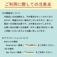 | 眠りを妨げないノンウェアラブルタイプ 身体に装着しないノンウェアラブルタイプなので、睡眠を妨げません。眠っている間にあなたの睡眠を計測します。 【電源ON/OFF操作が不要】ボタン電池(CR2032)使用で約2ヵ月間連続使用できます。※お届け時にはお試し用の電池が入っている為、新しい電池をご用意ください。 |