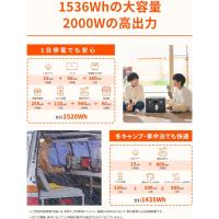 定格出力2000W(最大瞬間4000W)、容量1536Whで、電気ストーブ、電子レンジなど高い出力が必要な家電も、ブレーカーが落ちる心配をせず、気にせず使えます。災害発生時も1〜3日活用できます。