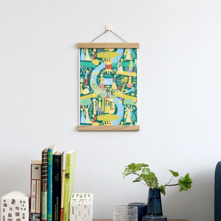Creamore Mill(クレモアミル)は、木製インテリアとガーデニングツールで知られる工房。機能性を兼ね揃えた美しくシンプルなデザインはイギリスで30年以上親しまれており、創業から変わらず職人による手作業で生産を続けています。ポスターハンガーは、ポスターはもちろん、お気に入りのテキスタイルのファブリックなども飾れます。オーク材のバーにマグネットがついているので、挟むだけで気軽にお楽しみ頂けます。