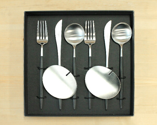 クチポール ゴア ブラック ディナーセット + カトラリーレスト 8点セット ギフトボックス入り Cutipol GOA セール 爆買