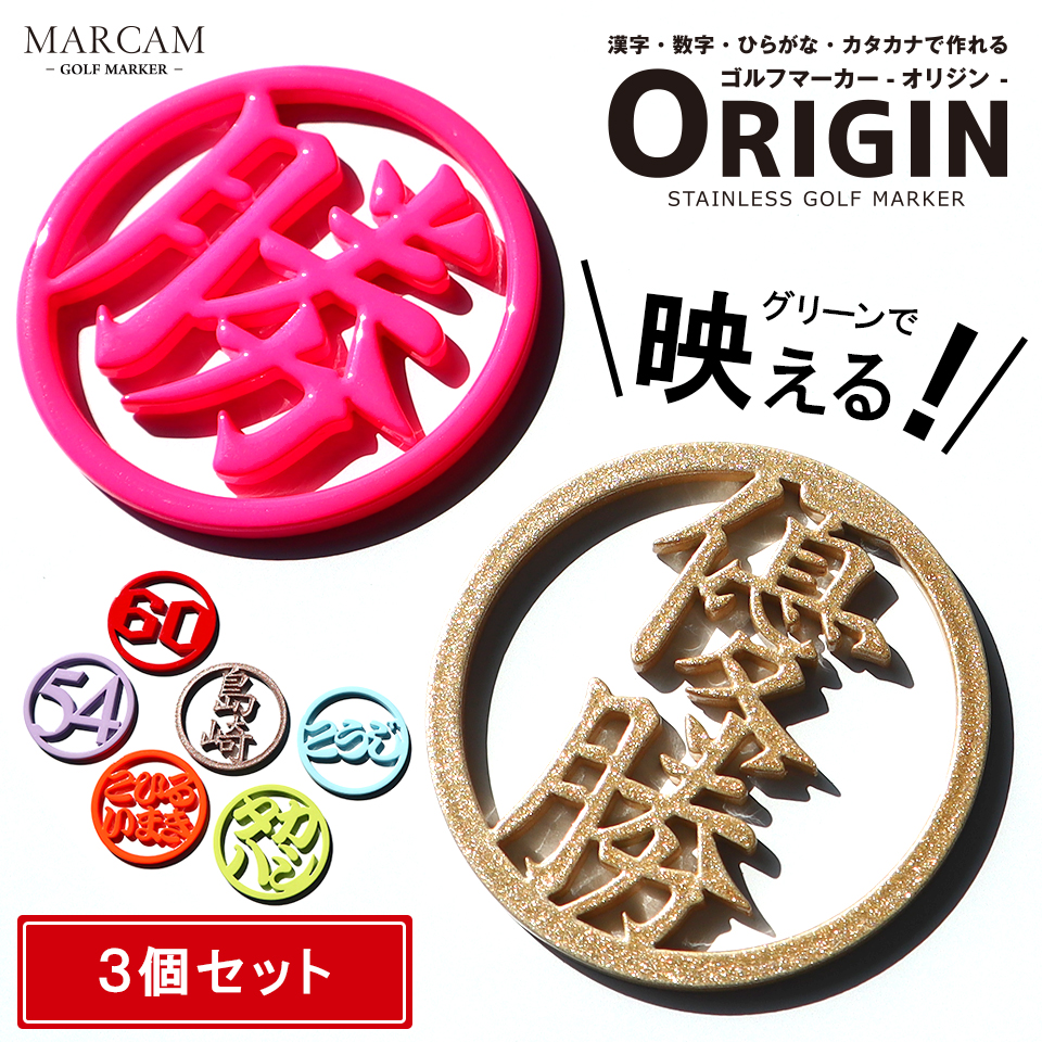 ゴルフ マーカー 名入れ キャップ 蛍光 大きい 還暦 おしゃれ ボールマーカー 名前 マグネット オリジナル MARCAM ORIGIN 3個セット(golfmarker04-3)