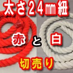 太さ24ミリのロープ 紐 赤と白があります 太さ24ミリ メートル単位で切り売り カラーロープ