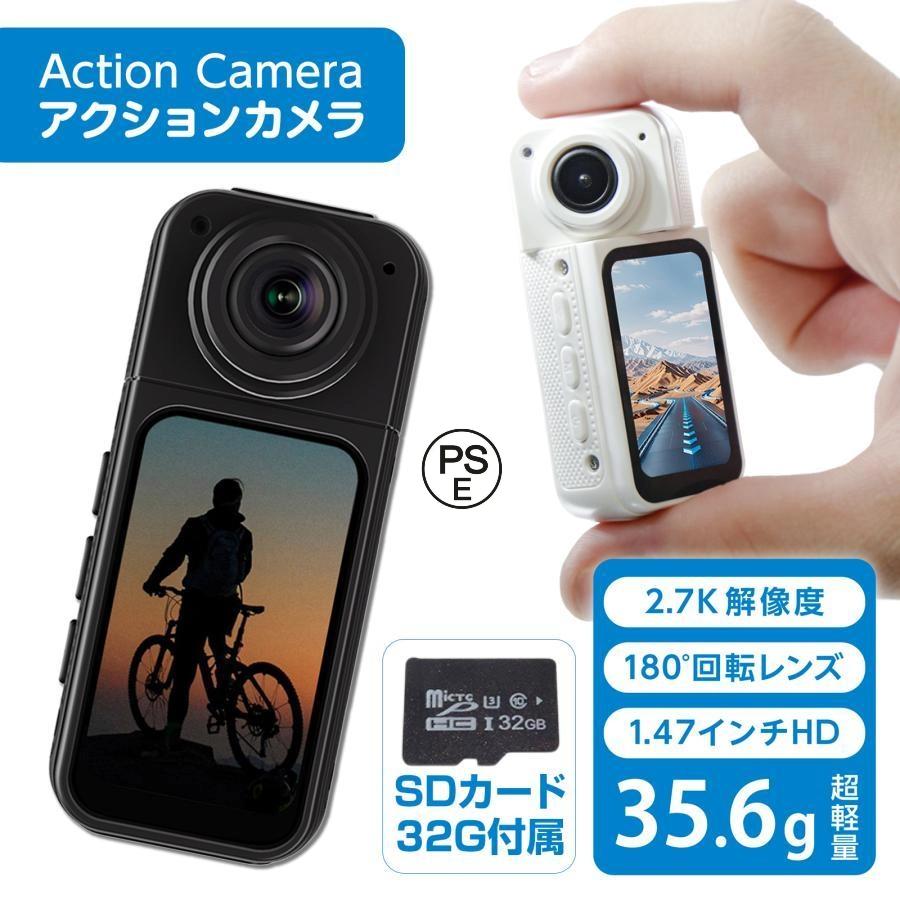 小型アクションカメラ 高画質 超軽量 SDカード32GB付属 180°回転レンズ 超精細ディスプレイ