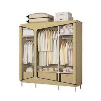 【ワードローブクローゼット】左中右三階の構造に分かれている。毎方には3つ可動式のハンギングロッドがあり、短いや長い服を保管できる;上階に布団商品を収納し、下階は3つ引き出し付き、折り畳み式の服に余分な空間を提供する;すべての服、布団、しには靴下、下着、パンツ、日常の小物などを簡単に収納できる。
