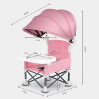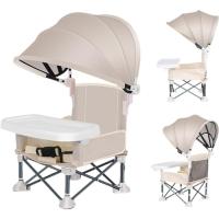 ベビーチェア折りたたみ サンシェード付き 食事トレイ付き椅子 育児グッズ 室内子供 防止 動き回り防止 安全ベルト付き 旅行用 帰省用 屋外用屋内 キャンプ