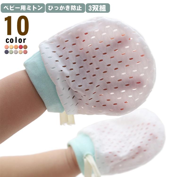 かきむしり防止 ひっかき防止 新生児 ミトン 手袋 3双組 左右兼用 赤ちゃん 出産祝い ベビー用 ひっかき傷防止 ベビーミトン 外れにくい 3双組