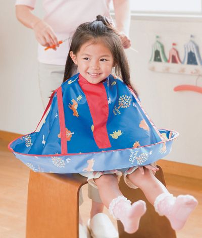 おうちで髪を切ってあげる時に便利な散髪用ケープです。すっぽりかぶせるだけで後片付けも簡単!えりもとは着脱テープでサイズ調節が簡単です。収納袋付きでコンパクトに収納できます。