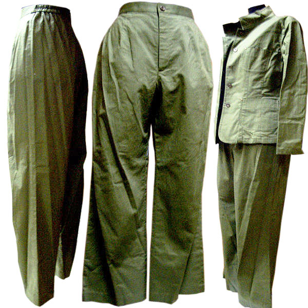 ストレッチ素材のスーツ(ジャケット・スカート・パンツの3点セット)カラーはダークグリーン