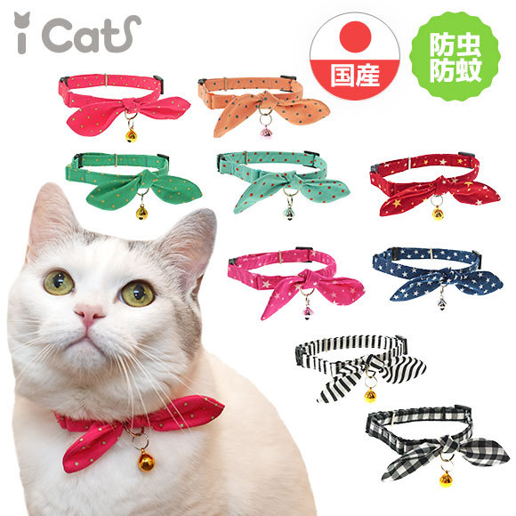 猫 首輪 iCat moscape ラブリーカラー 結びリボン 防虫 アイキャット 国産 布製 安全 |