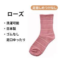 神戸生絲 コベス 靴下 レディース ゴムなし やわらか足口 すべり止め付き 日本製 ボーダー柄 入院 介護 通年用 22-24cm KO3337