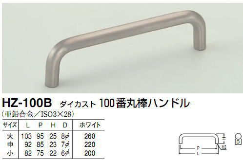 シロクマ 白熊印 HZ-100B ダイカスト100番丸棒ハンドル 引き出し、家具用取手 取っ手 小 75mmビスピッチ