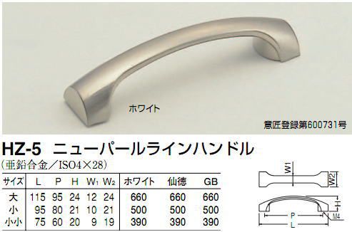 シロクマ 白熊印 HZ-5 ニューパールラインハンドル 引き出し、家具用取手 取っ手 小小 60mmビスピッチ