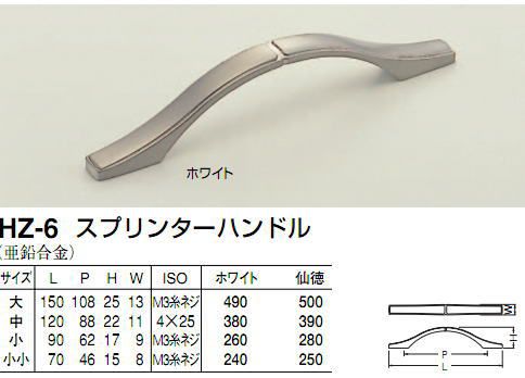 シロクマ 白熊印 HZ-6 スプリンターハンドル 引き出し、家具用取手 取っ手 中 88mmビスピッチ