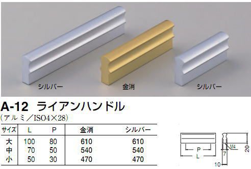 シロクマ 白熊印 A-12 ライアンハンドル 引き出し、家具用取手 取っ手 30mmビスピッチ 小