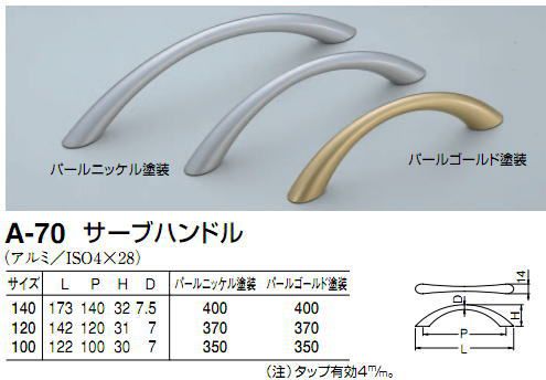 シロクマ 白熊印 A-70 サーブハンドル 引き出し、家具用取手 取っ手 120mmビスピッチ