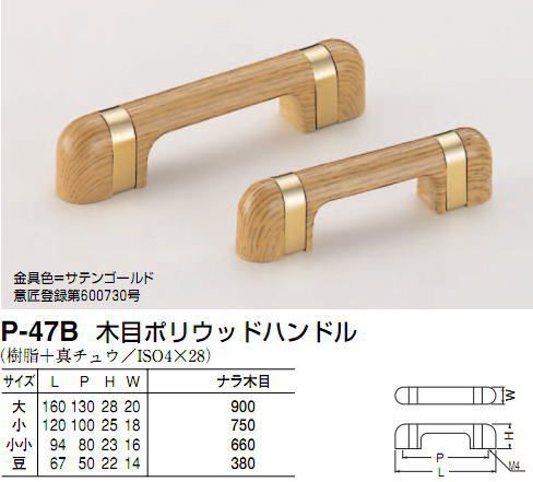 シロクマ 白熊印 P-47B 木目ポリウッドハンドル 引き出し、家具用取手 取っ手 小小 80mmビスピッチ