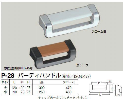 シロクマ 白熊印 P-28 バーディハンドル 引き出し、家具用取手 取っ手 大 100mmビスピッチ 黒チーク