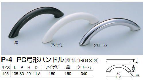 シロクマ 白熊印 P-4 PC弓形ハンドル 引き出し、家具用取手 取っ手 80mmビスピッチ アイボリー/黒