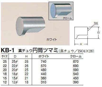 シロクマ 白熊印 KB-1 真鍮円筒ツマミ 扉、家具用つまみ 18mm ホワイト