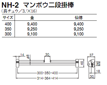 シロクマ 白熊印 マンボウ二段掛棒 ネクタイ掛け ネクタイハンガー 400mm NH-2