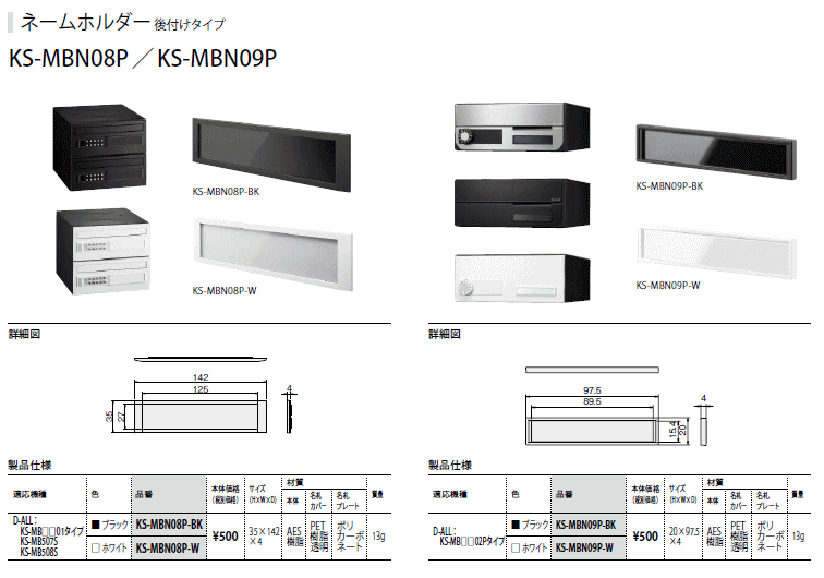キョーワナスタ KS-MBN09P-BK ネームホルダー 後付けタイプ ブラック